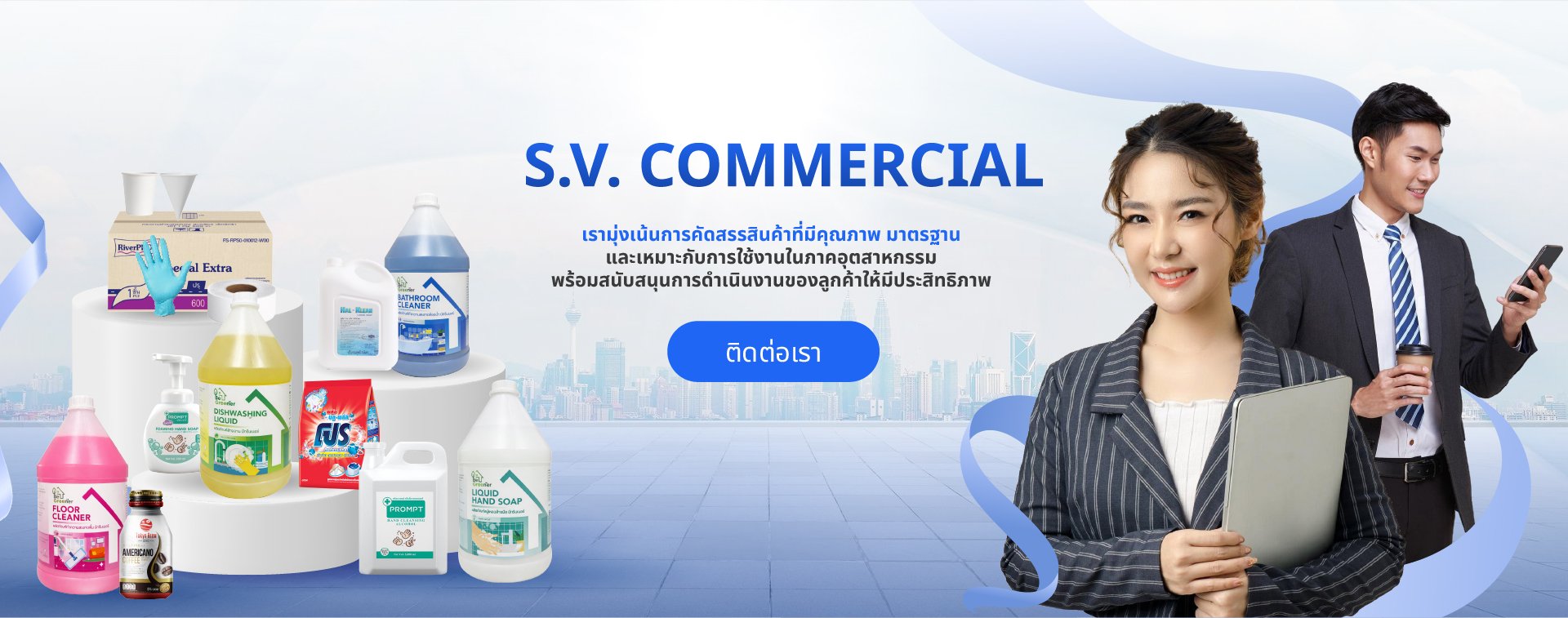 ผู้จัดจำหน่ายผลิตภัณฑ์ทำความสะอาด อุปกรณ์ที่เกี่ยวข้อง และสินค้าสำหรับภาคธุรกิจและอุตสาหกรรม โดยมุ่งเน้นการคัดสรรสินค้าที่มีคุณภาพ ได้มาตรฐาน และเหมาะกับการใช้งานจริงในองค์กร